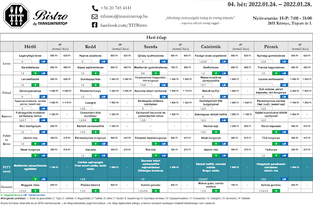 Információk az TIT BISTRO BY TRANSINTERTOP, Étterem, Környe (Komárom-Esztergom)