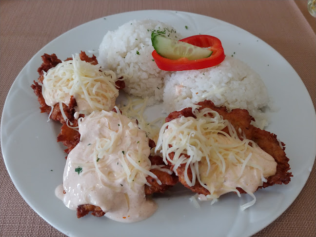 Turistáként, helyismeret hiányában véletlenül szúrtuk ki a helyet. Utólagosan is kitűnő választás. Amikor beütöttem az étterem keresőt a gps-be, pont mellette haladtunk el, így fel kellett kapjuk a fejünket. (Nincs az útról észrevehető megállitó tábla.) Egyszerre kb. 7-8 asztalnál folyt gördülékenyen a kiszolgálás. 3 pincér felváltva pörgött, a kommunikáció pár szóban kimerült. A rendelést felvevő pincér szűkszavú. Nagyon tágas étterem, az asztalok kellő távolságban vannak elhelyezve. A terítés egyszerű, de elegáns. Az étlap ár-érték arányban jó. Klasszikus (magyaros) ételek, a tálalás jó, az ízesítés jó. (5-ből 4 pont, az árakhoz viszonyítva nem okoz csalódást.) A felhasznált alapanyagok ár-érték arányosak, semmi extra. A kiszolgálás 8 asztallal (kb. 20-25%-os kihasználtság mellett) nagyon gyors volt. Az étlap kínálata, az étel minősége támogatta a gyorsaságot, panaszra nem adott semmi okot. A mellékhelyiség puritán, fehéren csempézett, tágas, tiszta. (A folyékony szappan viszont kifogyott.)