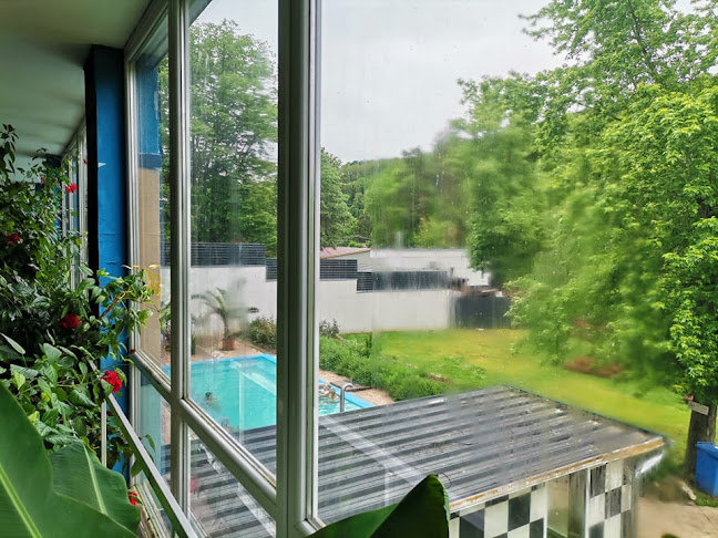 Kellemes,meglepő környezet. A pihenő ágyak ingyenesek, még a domboldalban is megtalálható jópár. A kültéri melegvizes gyógymedencéből nagyon jó kilátás nyílik az alsó napozó részre, bár ez a medence is lejjebb van sokkal a főépületnél. A főépületnben található az élménymedence sodrófolyósóval. A medence az egész épületet elfoglalja,de azért jutott hely egy étteremnek is. Az öltöz0ő, wc-k a főbejárat a pénztárral az étterem, hajaznak az Osztrák Hundertwasser épületekre. Egyszerűen nagyon jó.👍
