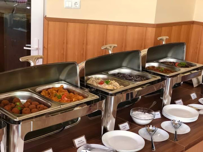 Igaziból másik élületben, az apartmanházban lakunk, ami nagyon tetszik. A svédasztalos étkezések vannak a panzióban. Az ételek házias ízűek, nagyon, nagyon finomak. A személyzet figyelmes. Tiszta, ízlésesen berendezett étterem, ahová a strandról is ban közvetlen bejárás.